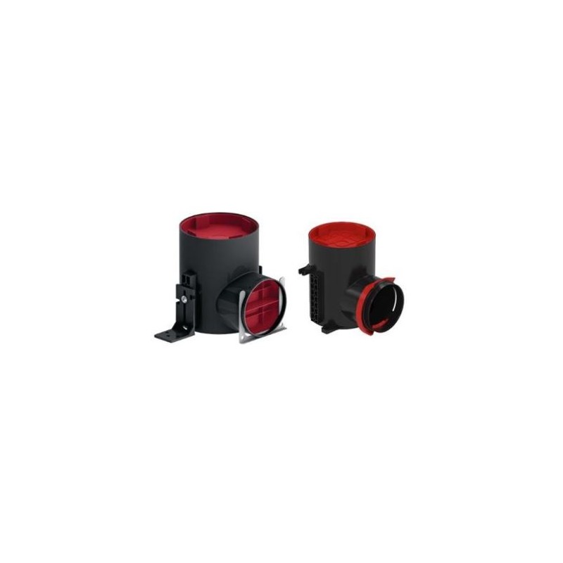 Les plénums coudé TVA sont en plastique ABS pour une qualité alimentaire et sont adaptés pour un montage au mur ou au plafond pour un raccordement sur des bouches DN 125.